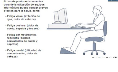 • Tensión muscular o mala postura, y tienen mucho que ver con el ajuste que se le pueda hacer a los muebles con los que se trabaja. La clave para evitar estas molestias consiste en trabajar en una posición cómoda en la que el cuerpo esté relajado y no se tensionen músculos o tendones.