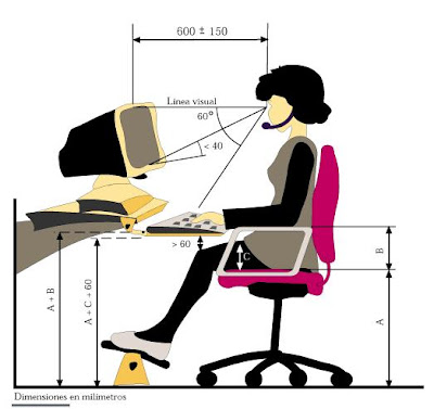 *La silla: deberá ser confortable y convenientemente acolchada. En cuanto a la altura de la misma, deberá poder dejar que la persona sentada tenga sus rodillas a la altura de la cintura, sin ningún tipo de flexión. El respaldo debe ser recto, y permitir que el operador apoye toda su espalda en el mismo.